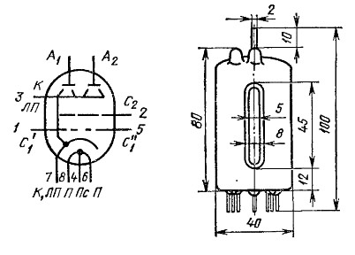Ток анода (при U'с1= -17 В) 40 ± 20 мА